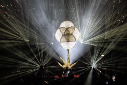 There’s a beautiful and delicate display of movement and dance from David Pereira. But my absolute favourite is the graceful and surreal act of parasol balancing from Tara Boom, making her debut performance.