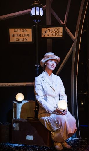 Lastly, Mark Desebrock as George pulled the production together; with more than a few nods to A Christmas Carol’s transformation of Scrooge, Desebrock’s George painted a sorrowful landscape of his unfulfilled dreams and the degradation of his ambitions due to his loyalty to the loan shop and his family. The contrast in his delighted and thankful persona at the end, having seen what life could be like without him in it, was pitched perfectly to counter the gravity of his despair when faced with the realities of letting his family down.