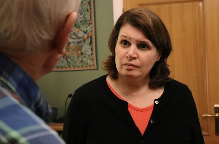 We take his journey with him, accompanied by the strains of mournful cello music, and by the characters who punctuate his existence: daughter Anne (Denise Rocard); her partner Pierre (Oliver Tims); chirpy carer Laura (Helen Geldert); The Man (John Wilkinson); The Woman (Danielle Thompson). Some are interchangeable, adding to our confusion. All are well able to tackle this demanding performance at Hampton Hill Theatre’s Coward Studio.