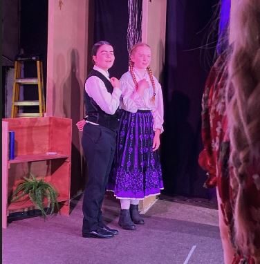 Frankie’s suave persona and the genuineness of his absolute love for Liza is perfectly portrayed by Emily Hill-Kelly, who not only manages to convey such passion with Swyer, particularly during their duets such as Love is an Open Door, but also a brotherly love for their butler and best friend George, amazingly acted by Evie Schaapveld. Schaapveld manages to carefully and caringly depict George’s sweet nature and the seriousness of his role as butler. She also provides hilarity at his fear of spiders (Becky Halden in heavy disguise) leads to one of the funniest scenes of the play.