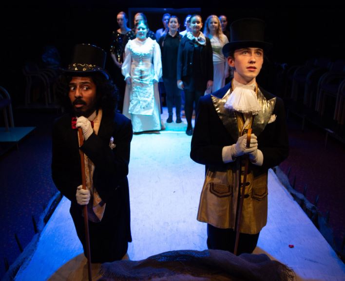 Overall, this was a solid production, well executed and full of mean and moody lighting with effective sound effects such as dramatic background whispering, meowing cats and mooing cows. Standout performances included Meaghan Baxter’s Alice, as the innocent girl still holding onto her dreams, and Robyn Marriot’s Ellen, “the cunning woman” whose potions act as the local apothecary. Gio Nickson showed great versatility in covering four roles, including the Devil as well as the Witchfinder, and Alfie Kennedy made an excellent accuser as Jack. However, it was their final and unexpected “song and dance” routine that still lingers in my mind.