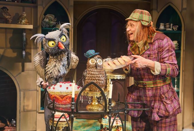 Wagner, a beautifully designed puppet owl, owned by Auntie, captures hearts with his deeply felt expressions and skilled movements by puppet captain Emily Essery, striking yet subtle. There are also some clever Hitchcock-like features to the puppetry that convey some vital action and plot, detailing Stella’s attempt to escape.