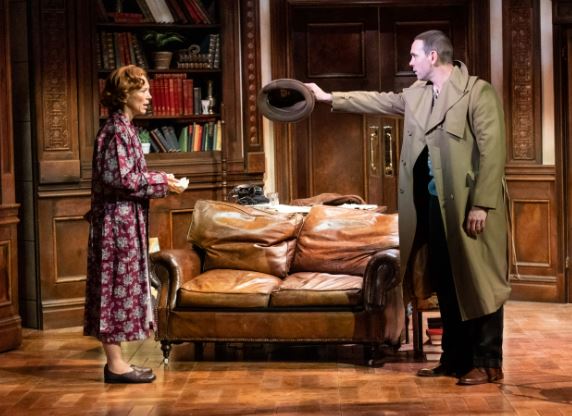 All of this takes place against Julie Godfrey’s beautiful, atmospheric set with book lined walls, leather sofa and strange but endearing cupboard with tile-surrounded basin for shaving. An old clock ticks loudly sometimes as time moves on (David Gregory’s sound design) and occasional, subtle strands of music nudge the tension up when required.