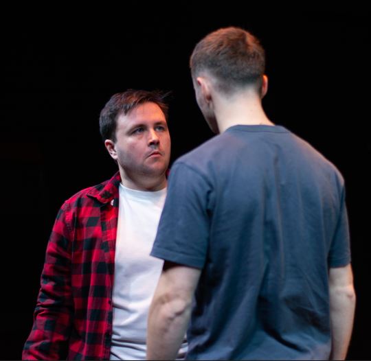 Piers, played by Alfie Lanham-Brown, struts briefly around, an archetypical whiz kid, but then he discovers a former classmate, Tomas sitting there amongst us. (The audience does get rather drawn into this piece.) Tension soon replaces confidence.