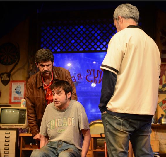 The trio is not a logical one. Donny (Eric Petrossian) is phlegmatic and not over-inspiring, but deep down he is a person with whom we can sympathise as he has a heart, and is occasionally capable of some outbursts of temper caused by frustration. Eric deals well with the character, but I have to say that sometimes he speaks so quietly that he becomes inaudible. Bobby (William Hunter) is the novice, out of his depth, naïve, and a somewhat pathetic individual. It is a lovely and well thought-out portrayal, but sadly I have to say that his diction is again sometimes inaudible and we miss more lines than we should. Teach (Hugh Cox) does not have that problem: he is the “Big Man” who dominates and elements of the “know it all” come out. However as the play proceeds, we find there are a number of weaknesses in the character. “Words, words, words (as Hamlet says)”, and we come to realise that a lot of Teach is merely bluster rather than action, which he is too much at pains to explain and justify.