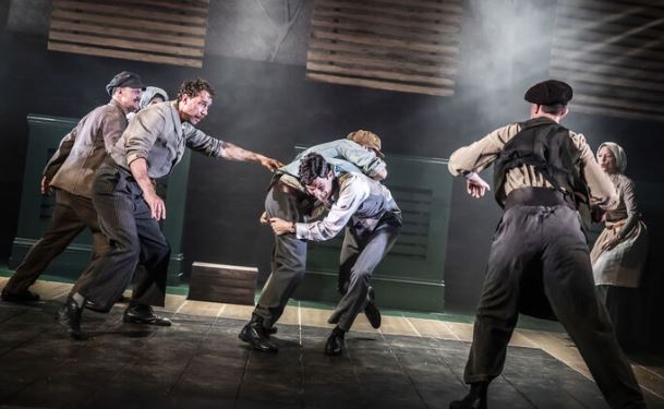 Retaining just enough of the novel’s contemporary plot thread to bookend the story, the play opens with a young man searching for a particular name in the war cemeteries of northern France. This provides some ominous foreshadowing to the adventures of Stephen Wraysford (James Esler, wonderfully dynamic throughout) as he visits René Azaire’s factory in 1910 Amiens, to compile a report for his guardian who wishes to buy it. The factory’s beleaguered workers are facing further hardship in pay cuts, and there are stirrings of unrest.