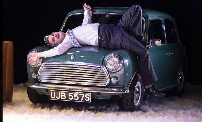 Another fresh vision is the creative set designed by Anna Yates. Gone was the usual closed box set to be replaced by an inventive open stage. This was a set without walls – kitchen, dining room, living room, utility room, garage and even the loo were on open show. At the back of the set was another star of the show, the Cooper’s car – an actual green mini of the period – UJB 557S (but, for purists, without a tax disc on the windscreen!). Beverley’s fully-fitted kitchen was also on show, full of new-fangled labour-saving gadgets that Beverley was famously incapable of using. Then, in the foreground, the main living area with all the trappings of the Cooper’s shallow and pretentious lifestyle – white shag carpet throughout like a layer of snow, the drinks cabinet, the record player, the three-piece suite complete with zebra print throw and, of course, bottles of Bacardi, LP’s and a tray of cheese and pineapple on sticks. Also complementing the production was Jaimie Lu’s sound design with dramatic music ranging from repetitive techno beats to Beethoven’s Fifth.