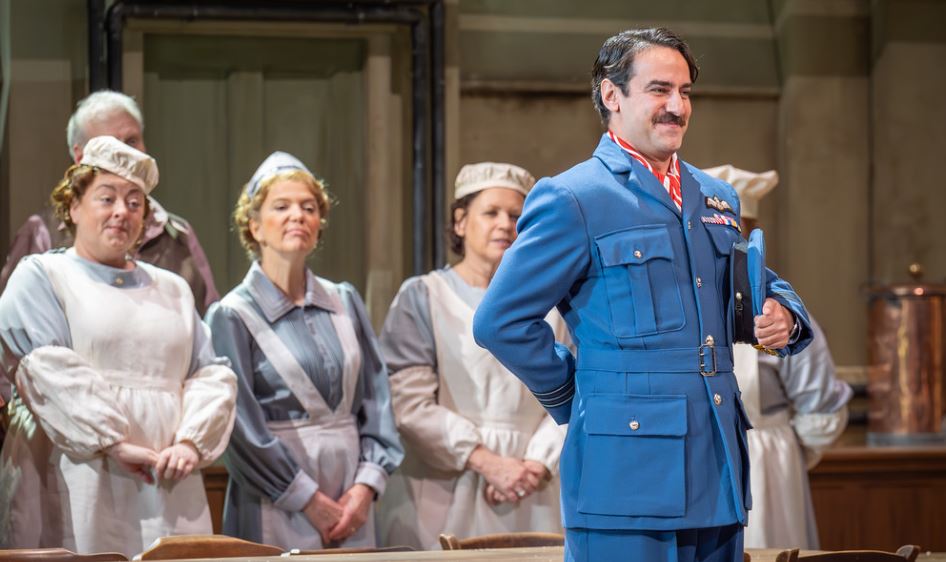 A cynic might say that all a director needs to do is not muck it up by making the mistake of trying too hard. That is not Harry Fehr’s approach. But his interventions are largely harmless and decorative and he works with the grain of the piece rather than against it. He sets it during the Second World War on an English country estate, with airmen, land girls, and impoverished aristocrats. He could be accused of aiming at the Downton Abbey market, although the result is generally rather classier than that. As if that wasn’t enough, he then proceeds to frame the opera as an episode from a TV sitcom.