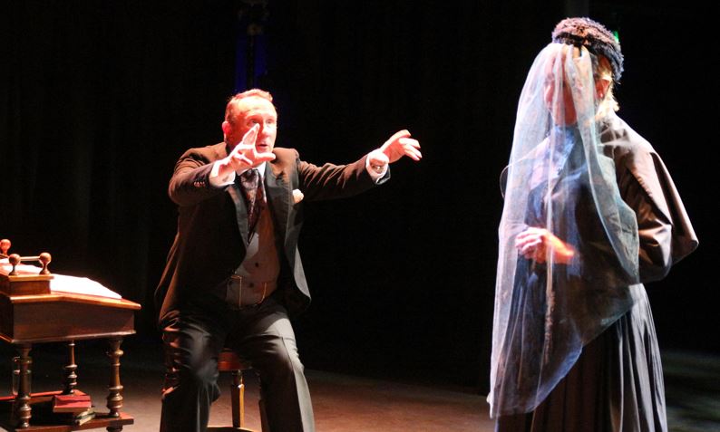 What The Dickens? begins in the shadowy ambiance of a sparse stage at the OSO Arts Centre on a cold London night, appropriately evoking a ripple of the timeless setting of A Christmas Carol, in this theatre on the banks of Barnes Pond. Clive Hayward’s Charles Dickens steps forward, marching to his spot, ostensibly to deliver a reading of his festive classic. However, it soon becomes clear that the audience is not simply in for a methodical retelling of Ebenezer Scrooge’s redemption, since Dickens finds himself written into the role of protagonist, as the performance delves into his personal story – whether he consents to it or not. Clare Norburn’s play then exists as a sort of meta narrative arc reserved more commonly for dystopian science fiction. For the sake of a pun, if it were a century later, it would be Philip K. Dickens.