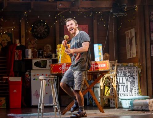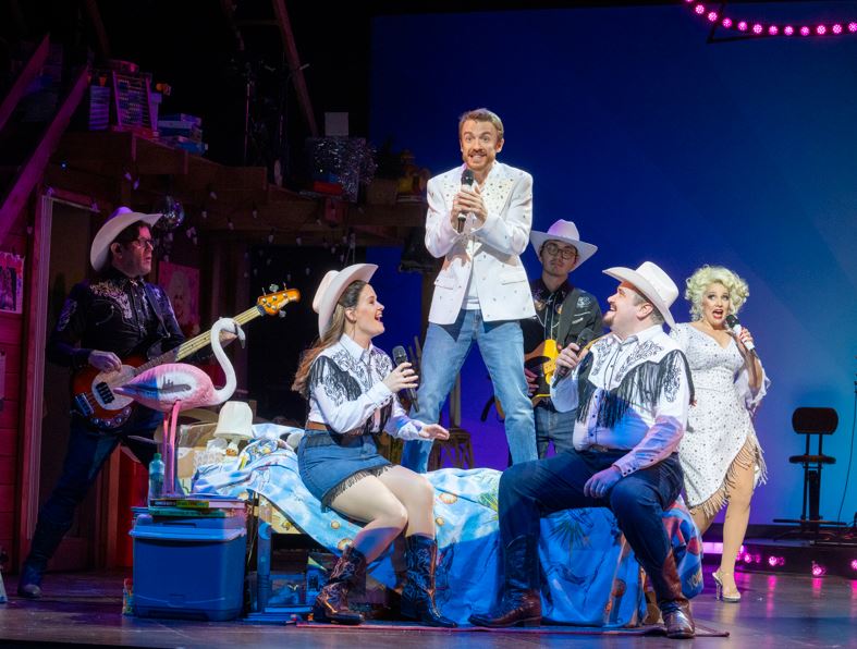 Backing singers Aidan Cutler and Emma Jane Fearnley ably double up as secondary characters such as Kevin’s’ parents, his ex, and his ex-boss. Band members Austin Garrett (Swing), Luke Adams (Guitar), Ben Scott (Drums) and Kevin Oliver Jones (Bass, Harmonica) seamlessly appear at pivotal moments in their matching outfits, providing live music to make this story come alive and move to the finale’s medley of Dolly’s classic songs.