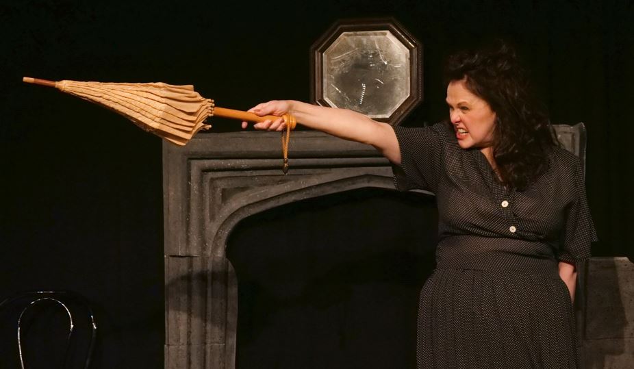 An apt dark setting with troubled-looking antique furniture and a piano that creates the right atmosphere; it sets the tone of resentment to come, and gives an aura of genteel poverty. There is also a nice claustrophobic touch, which is not unattractive. The atmospheric set was designed by the talented Junis Olmscheid, who also designed the costumes. This play was written by Strindberg in 1900 and this production has a mixed sense of period. Alice’s dress looks ‘forties and Kurt has near-Nazi attire.