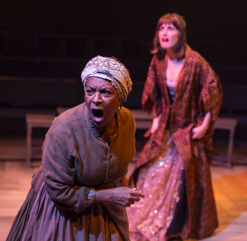 Nell Gwyn – the orange seller who became Charles II’s mistress – is effervescently played by Zoe Brough. She manipulates her way into the theatrical company and – to start with – is better at survival than performing, but there is a steely inner core behind the bubbles and a ruthless ability to make the most of her opportunities. Her ability to rise to the top of this corrupt and fiercely competitive society – now a matter of general knowledge – seems anything but a foregone conclusion in an era when being a diva wasn’t really an option. Mrs Farley (a troublingly vulnerable Nicole Sawyer) is an orphaned preacher’s daughter who is faced with a choice between joining the theatre – condemned as immoral by her late father – or going on the streets, while the feisty Mrs Marshall (Katherine Kingsley) faces retribution for daring to take on the hecklers.