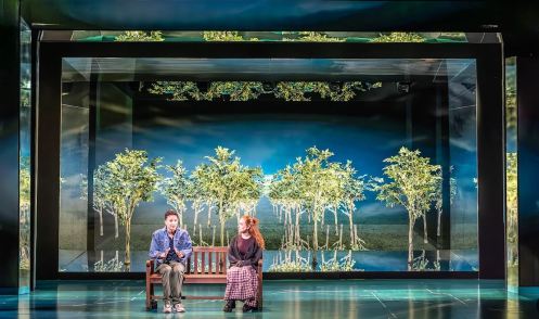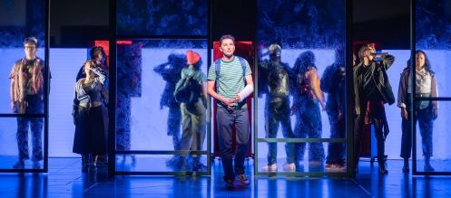Evan’s fellow classmate Alana (Vivian Panka) becomes the co-president of the Connor Project, a website with blog and fund raising platform for The Orchard, a place where Connor’s parents enjoyed family picnics. Alana initially finds purpose in her frequent postings and the many ‘likes’ her posts receive, before becoming desperate that Connor’s memory must be kept alive whilst projecting her own anxieties and insecurities that she would become forgotten and obsolete in the event of her own death. Morgan Large’s set and video designs perfectly draw the audience into the frantic and instantaneous world of social media posting, reposting and commenting (along with trolls).