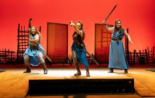 Hannah Victory, in the leading role, is a commanding presence, portraying the dignity and nobility of Queen Boudica, in a controlled performance of an independent, self-assured and resilient woman, an iron lady. Yet, she is a woman whose vulnerability is as a mother, drawn by her relationship with her daughters.