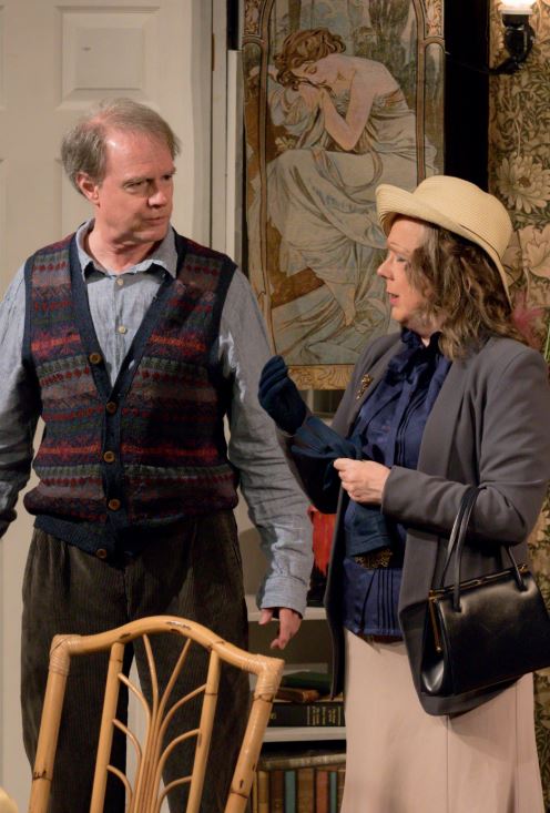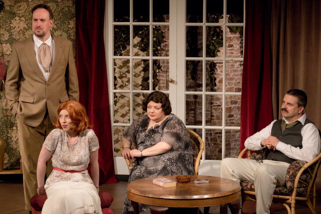 Genial George appears to have survived the economic depression between the two World Wars. He inhabits a cosy semi whose dining room speaks of genteel living: William Morris wallpaper, tinkling fine china tea-cups, suppers of ham and tongue and salad. Full marks to set design and construction by Bob Gingell and Harriet Muir.