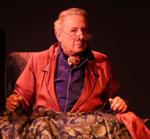 Other standout performances included John Mortley’s corrupt lawyer Huld, bedridden with a heart attack, and Susan Reoch as Block, his wearily submissive client. Elewisa Kuusi, as well as making a commendable K4, also excelled in the ebullient role of Titorelli, the portrait painter for the courtrooms.