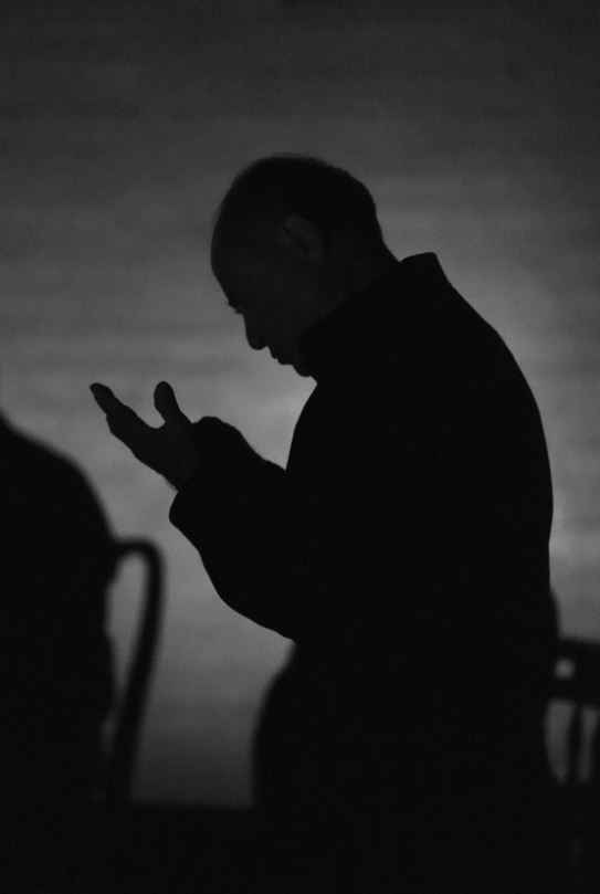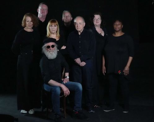 Fortunate it is then that this play, written in 1953 for radio, is available to experience this week. It’s a work to be experienced, rather than watched, as it was originally written for the radio and director Simon Roberts has cleverly decided to stage the whole thing in the dark with nine actors clad in black, seated in two rows silhouetted against a gently lit back wall. The players sit, stand, make small gestures and movements but overall the focus is on the voices as Dylan intended.