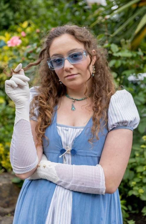 This versionis a bright and breezy affair, perfect for a summer evening. Jane Austen has just finished her latest manuscript, Emma, and her nieces sneak into her room to read it. Performed at pace, and without an interval, the play is largely performed by Jane Austen’s nieces who make a big entrance in period dresses accessorised with huge sunglasses, while Austen herself generally lounges in chairs at the side of the stage, dropping in occasional plot details, and seemingly terribly amused by the whole production. Played with visible glee by Priya Patel, Austen also takes on the key role of Mr Knightley, switching between the two by an impressive shift in body language, but also through the fun motif of putting on or removing a large pair of glasses.