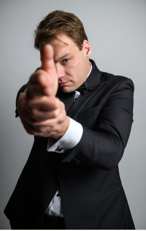 What makes this production particularly compelling is its structure. Steven’s story is framed around the jackets worn by each incarnation of James Bond, a simple yet inspired theatrical device. Each jacket marks a new era in both the Bond films and Steven’s life, serving as both costume change and emotional transition. The moment Blake shrugs into a new blazer, the audience knows we’re entering a new phase: the Connery years of childhood hero worship; the Dalton and Brosnan phases of teenage awkwardness and adult cynicism; the Craig era of raw emotion and re-evaluation. This clever motif gives the piece a sense of rhythm and familiarity, grounding its flights of fantasy in something tangible … and there are plenty of those flights! The performance is packed with familiar quotes, impressions, and sequences that fans of the franchise will instantly recognise. However, what elevates the material is Blake’s ability to move beyond pastiche. His impressions: of Bond, Q, Moneypenny (and an especially brilliant Sean Connery – you can pay me later, Cyril) are consistently funny but never feel gratuitous. Instead, they are tools for deeper exploration: of masculinity, of Britishness, and of the expectations passed down from one generation to the next.