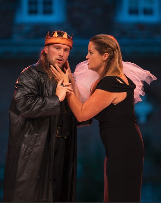 Bouton’s presentation really works in synergy with Mari Wyn Williams’ Lady Macbeth. The evil chemistry of their characters is fully charged in their duets. After having stabbed King Duncan to death, Macbeth returns to say “all is finished”. Bouton’s Tutto è finito hits the “finito” with a tormented semitone that propels the opening fatal mia donna duet. Here we see Lady Macbeth take over the action with ruthless resolve, as she orders him to be bold, while he ruminates that on a “pillow of thorns” he has “murdered sleep for ever”.
