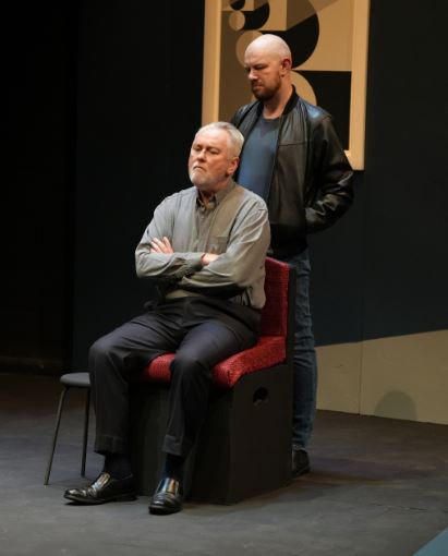 Events escalate, but the structure remains the same, as each scene shows Salter talking to one of the clones, each time wearing subtly different clothes, courtesy of costume designer Nichola Thomas. Bernard 2 wears a t-shirt, tending to look quite vulnerable next to his jacketed father, while Bernard 1’s aggression is emphasised by his leather jacket. And what is the audience to make of Michael, a final clone who dresses in a style not dissimilar to his father?