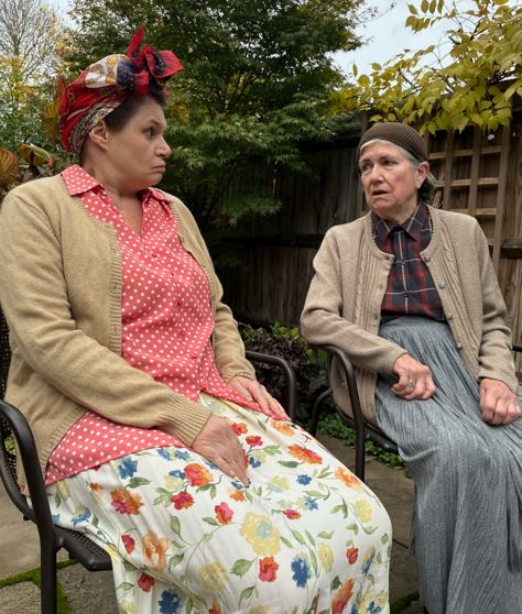 There’s a lot of good humour, certainly at the beginning, and Fiona Smith’s direction ensures the dialogue can linger, giving it plenty of time to be digested. The diction of both Nigel Andrews and Robin Legard is crystal clear which adds to our enjoyment of their rambling chatter, as do their physical reactions and immaculate comic timing. But under the skin of this play there is a lot more going on than the simple exchange of anecdotes. Perhaps these are not two lifelong friends wallowing in their memories, which begs the question — what exactly is their relationship? And exactly what garden are they in? A public space or a normal domestic garden at home? Occasional clues are dropped as to their whereabouts, in what can only be called the art of the slow reveal. The answer eventually becomes clearer with the lively entrance of the two female characters, Kathleen and Marjorie, which heralds a significant change in pace and mood. Kathleen’s remark, that “they” took away her lace-up shoes in case she hanged herself, gives further confirmation to our suspicions. Yes, the setting for this home appears to be in the garden of a mental institution.
