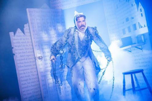 Props are used with similar intelligence. The oversized ledger that dominates Scrooge’s desk is an inspired symbol – his obsession with work, his fixation on numbers, his myopic understanding of value. Its physical enormity onstage communicates everything we need to know about the weight he carries and the weight he imposes on others. As the story progresses, however, the ledger is eclipsed by a magical snow-globe, introduced as Scrooge revisits his past and peers into possible futures. The snow-globe does more than conjure Christmas sentimentality: it represents childishness lost and, ultimately, rediscovered. It marks the moment he allows himself to look beyond profit margins and into memory, emotion, and imagination.