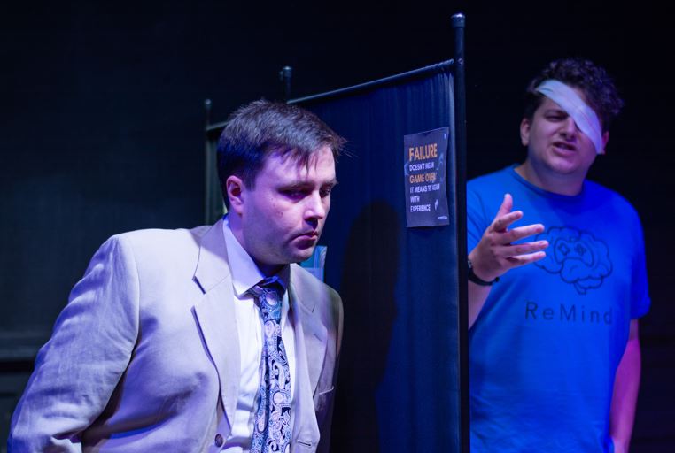 With a voice-over that is Nixon-esque, Piers enters the stage. The environment appears to be a teaching room. He switches off the CD player and addresses us, his pupils on a Jobseekers course. (It seems that’s what we’ve paid for!). We have entered the surreal world of My Plan For Tomorrow, director George Abbott’s well-written play exploring, and questioning, the value of success and failure.