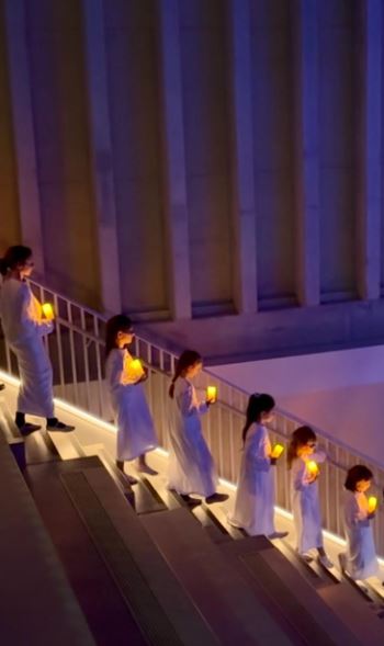 The lights threw us into near-pitch darkness for what seemed like an eternity; not a sound was heard from the audience. Then a moon appeared somewhere above the stage, and lighting slowly amplified, revealing through mist the magical forest, bathed in an eerie purple glow, swaying with the opening cello glissandi, the sounds of another world entirely: the fairy world of Oberon and Titania.