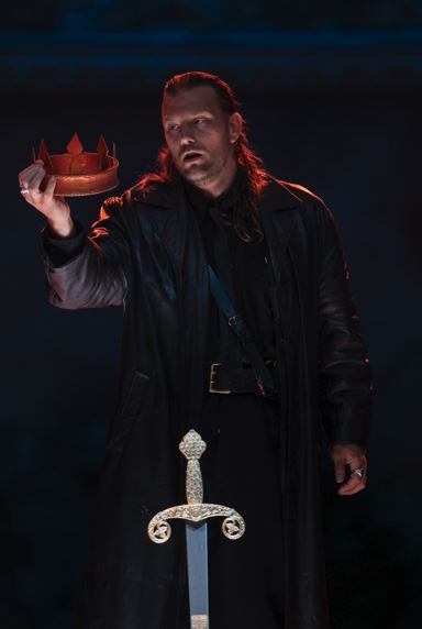 It is the intensity of director Richard Studer’s production that makes it stand out. In Verdi’s Macbeth there is no romantic tenor lead, no soprano heroine, as one might expect in an opera. In fact there are no heroes at all. The two leading characters are real people who suffer for their over-vaunting ambitions, progressively tremulous, triumphant, terrified and ultimately torn apart by their guilt as they are sucked into a spiral of evil of their own making.